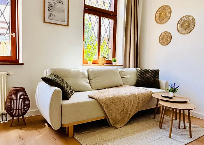 Disfruta de tus vacaciones en Érfurt en el Stilvolles Boho Studio-Birgit S-Bahn-Wifi-Garten Érfurt. Ideal para quienes buscan una experiencia auténtica, está situado a 25 minutos a pie del Museo de Etnografía de Turingia y a una distancia de 2 km del Puente de los tenderos.